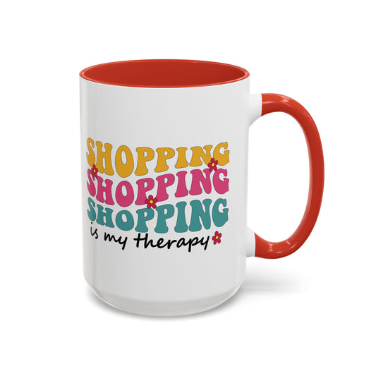 Accent Coffee Mug - "Shopping is my Therapy" - Fun Gift for Self-Care, Motivation, & Celebrations