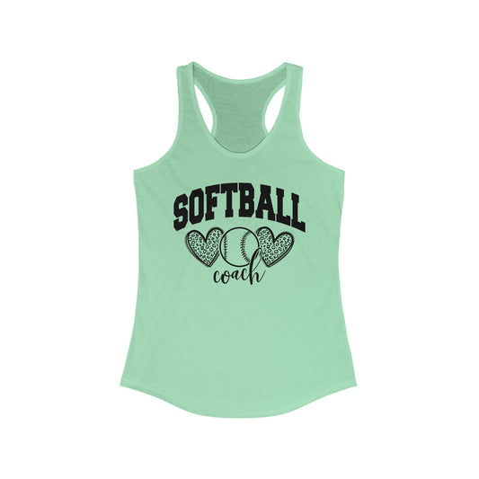 Women's Racerback Tank Softball Coach Hearts Baseball (Black)